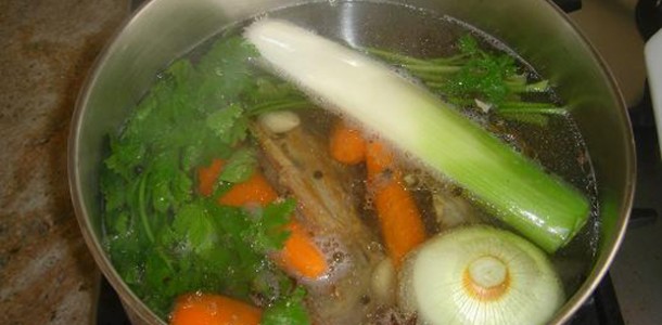Not: Esmer et suyu istiyorsanız, önce kemikleri her iki yüzleri kahve rengi oluncaya kadar fırınlayın, fırın tepsisinin dibini biraz sıcak su ile kazıyın ve tencereye kemiklerle birlikte ilave edin.