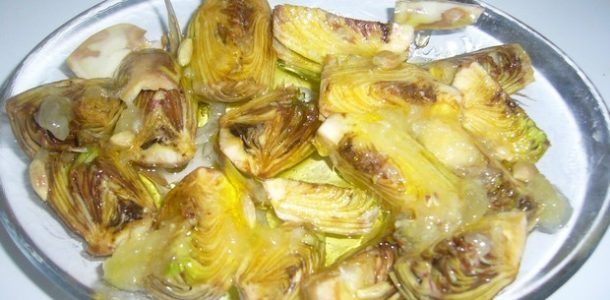 Enginar göbekleri uzunlamasına ikiye bölünür, parçalar tekrar ikiye bölünüp, servis tabağına dizilir. Üstlerine tuz, limon ve zeytinyağı sıkılarak afiyetle yenilmek üzere sofraya konur.