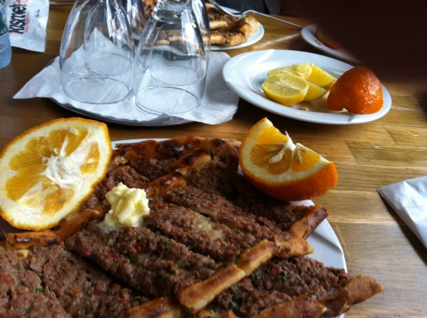 İncecik açılan pide üstüne kalın kıyma serilip fırına verilir, fırından alınca tereyağı sürülüp dilimlenir. Yanında turunç ile servis edilir,yenilirken üstüne bol turunç sıkılır.