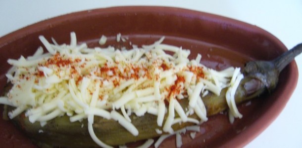 Patlıcanın sapı kısa kesilir, arka yaprakları ayıklanır, közlenir bütünlüğü bozulmayacak şekilde soyulur. Fırın kabı yağlanır patlıcan yerleştirilir, çatalla delinip üstüne tuz karabiber eritilmiş tereyağı ve dövülmüş sarımsak konulup en üste rendelenmiş kaşar yayılır. 180 derecede kızarana kadar fırınlanır.